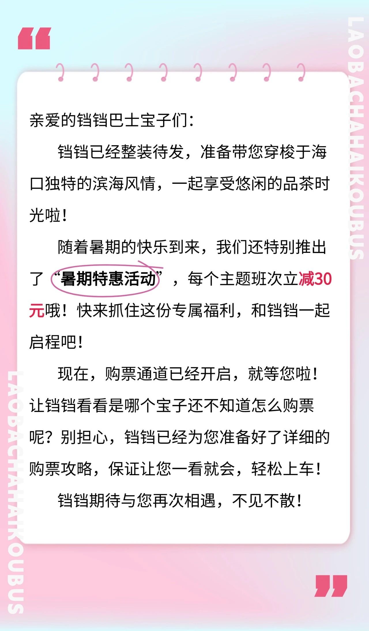 海口真好玩 | “老爸茶·海口巴士”暑期特惠活动来啦!附上购票攻略→