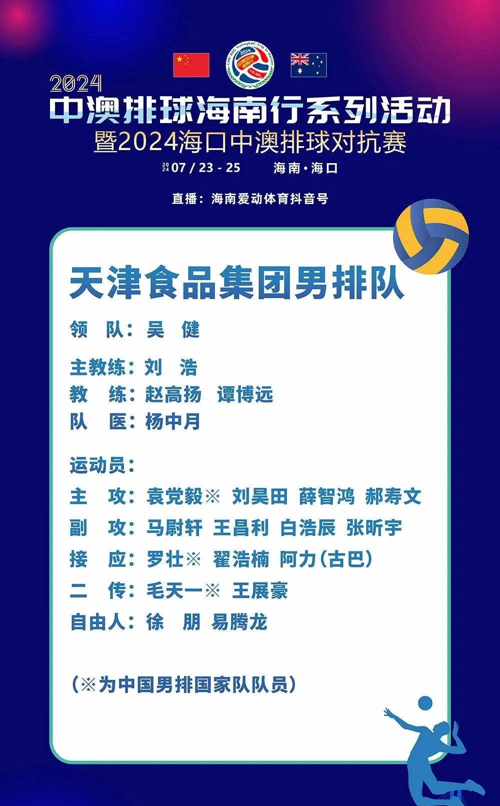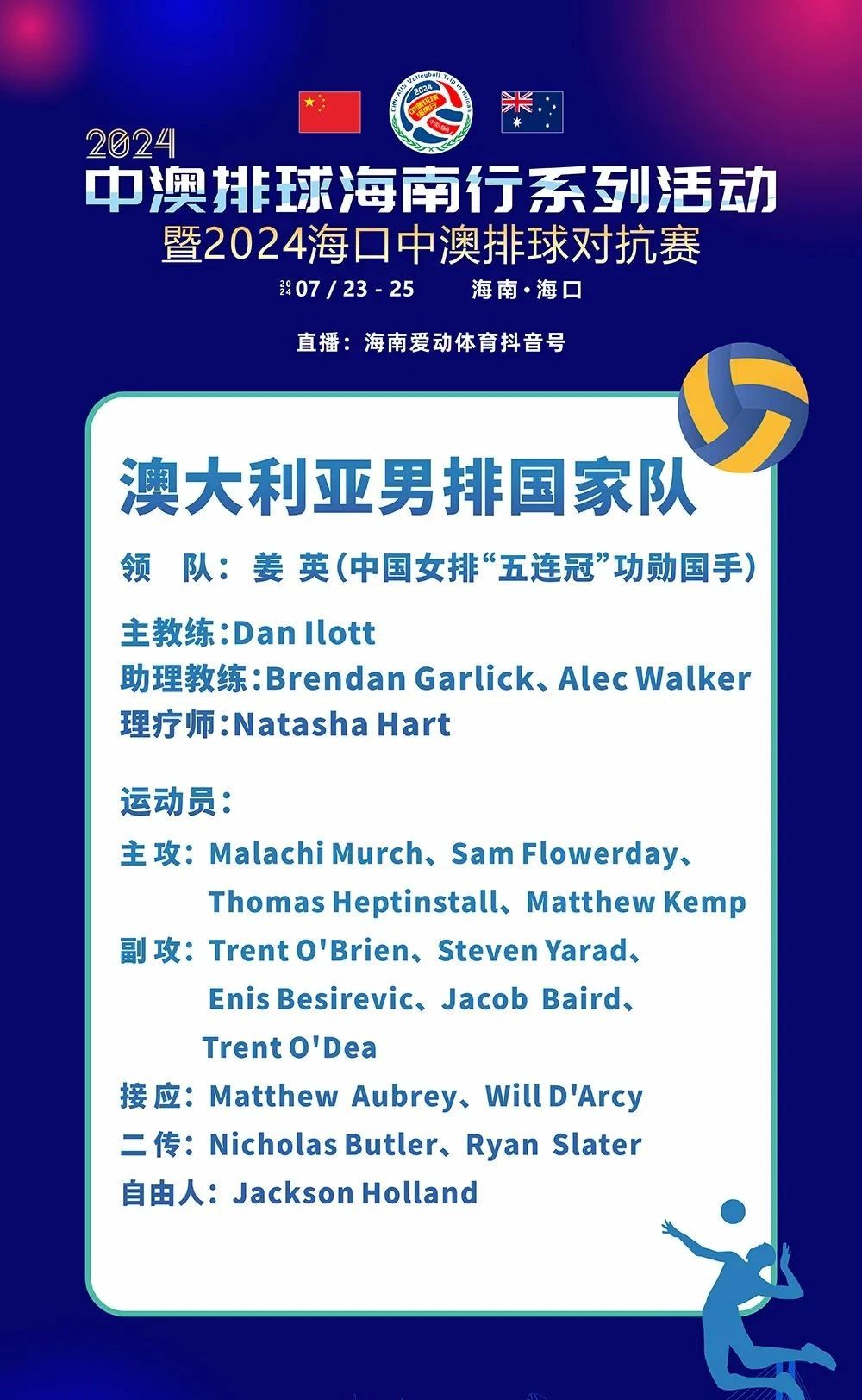 原标题:观赛指南 | 张景胤率队踢馆!2024海口中澳排球对抗赛门票开售,低至58元/张