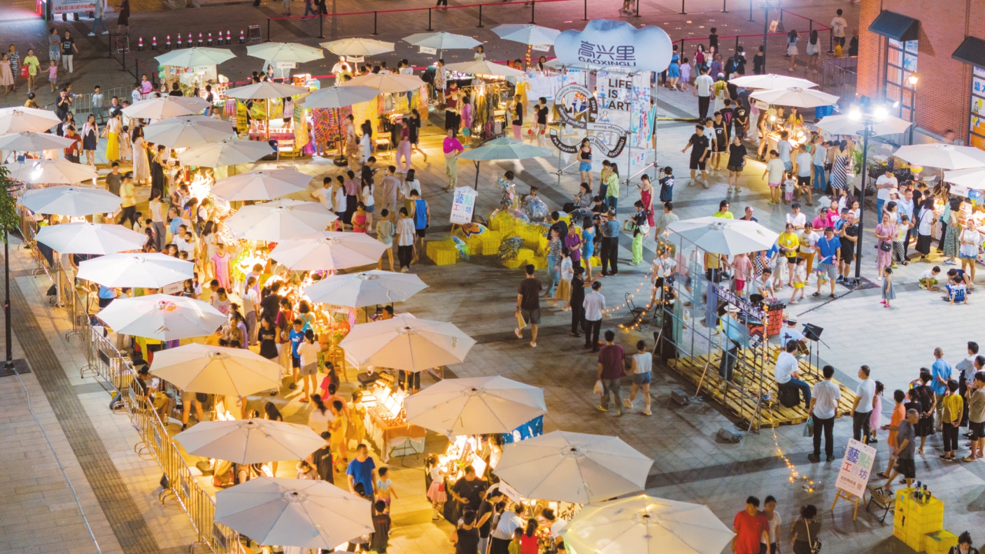 市民游客在高兴里特色商业文化街区逛夜市、看演出、享美食。本报记者 苏弼坤 摄
