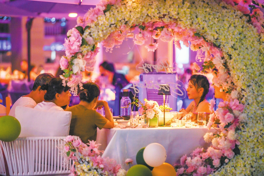 市民游客在海口FUNBAY自在湾享受美食。本报记者 康登淋 摄