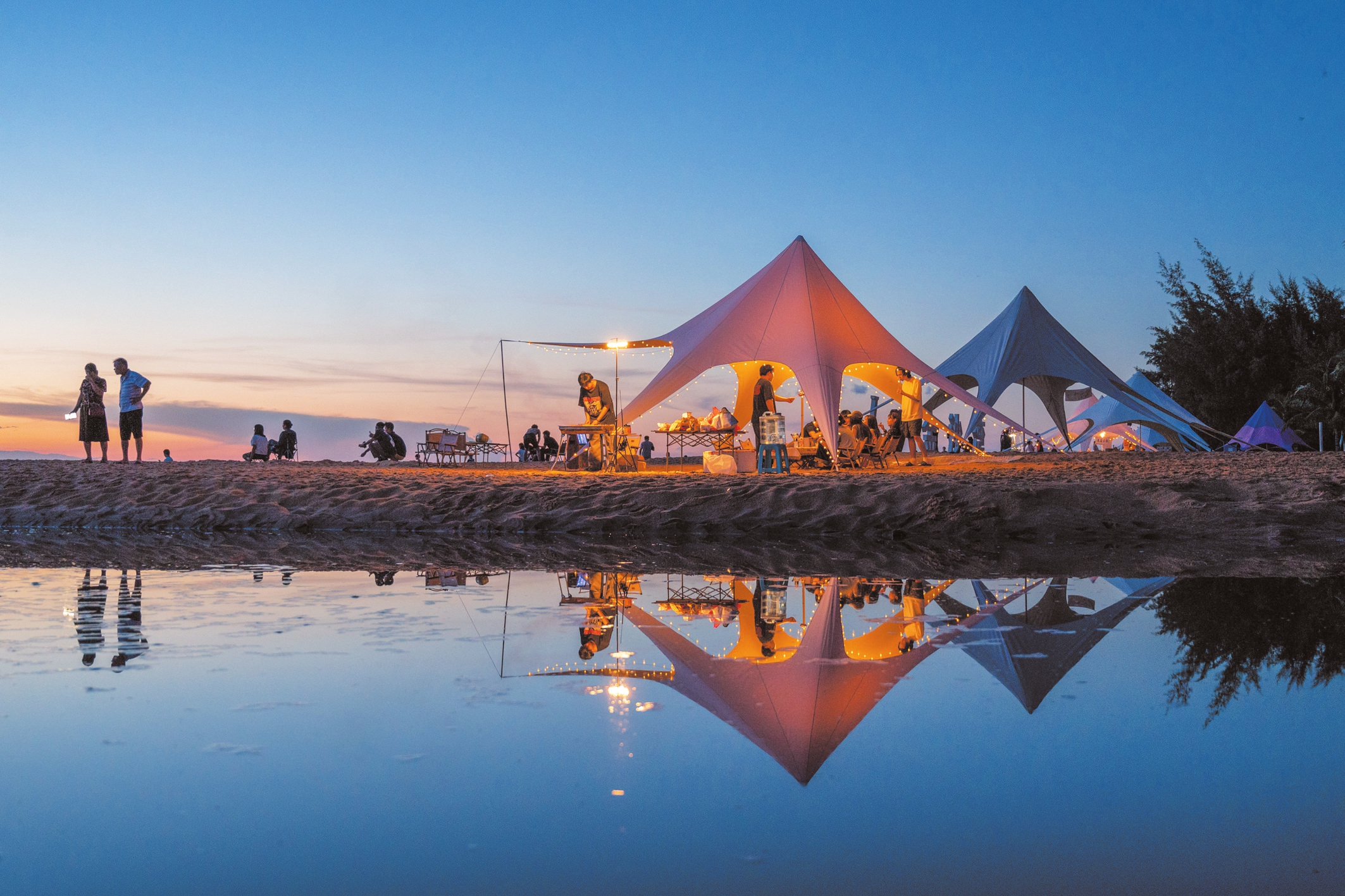 市民游客在海口荣山寮村享受海边露营慢生活。 本报记者 石中华 摄