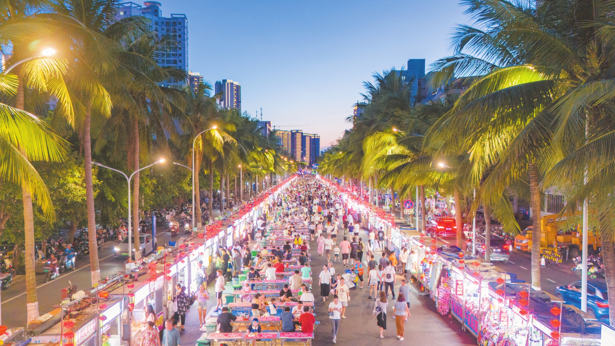 华灯初上,星星点点汇成一条闪烁的亮带。此刻的椰城,彰显出满满的夜间活力。夏季以来,这座城市逐步升温的不只是天气,还有火热的夜生活。