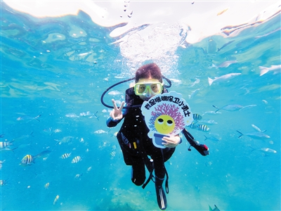 游客在蜈支洲岛潜水。(蜈支洲岛供图)