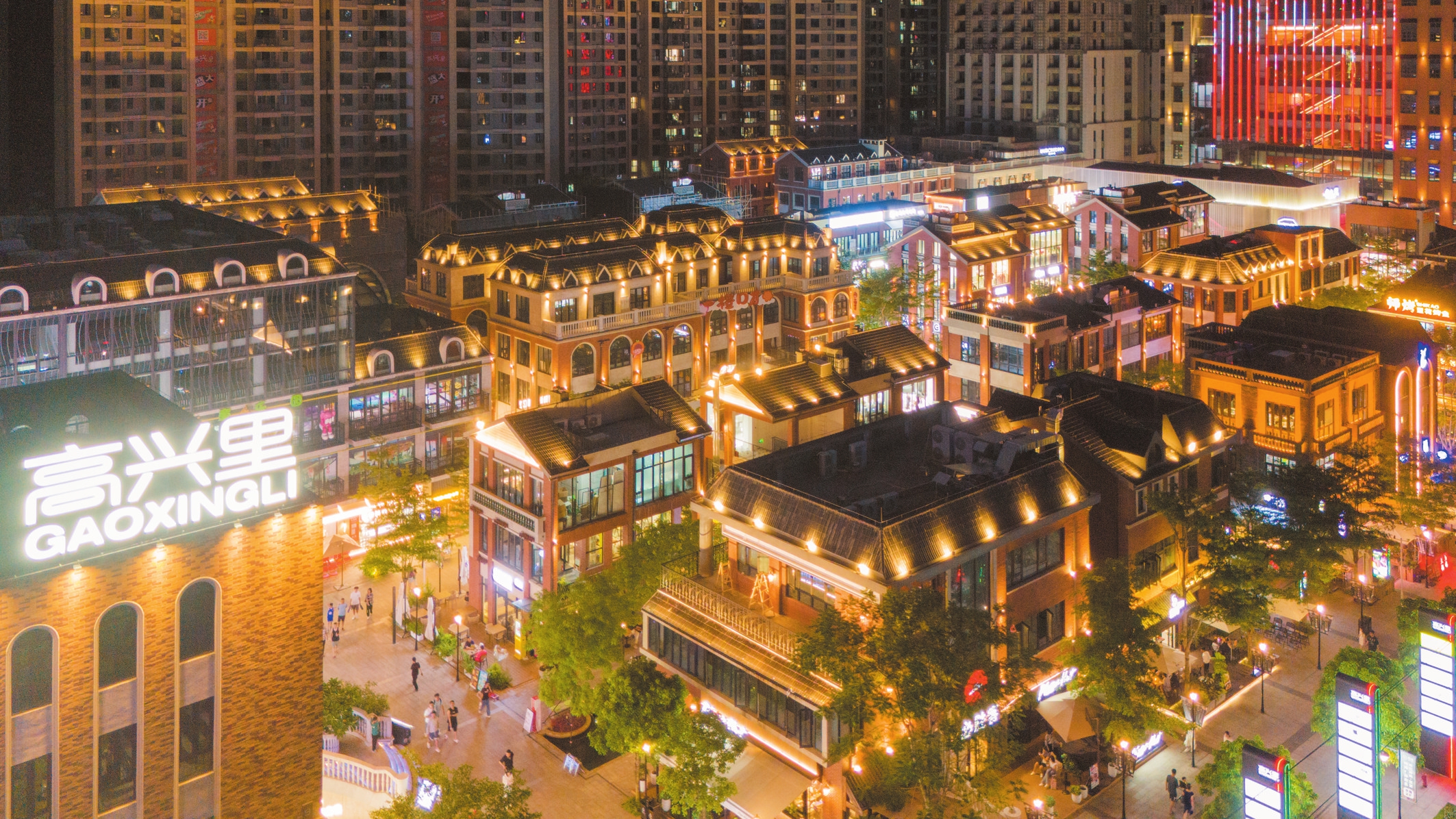夜幕降临,不少市民游客来到琼山区高兴里特色商业文化街区休闲游览,逛夜市、品美食、看演出。