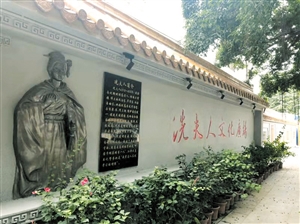 12月10日上午,记者在高坡村冼夫人文化馆看到,古色古香的文化墙上,雕刻着冼夫人的浮雕和简介,另有8块刻碑,均为省内知名书法家题诗赋词。馆前广场与公共街道交界处新建起5面景观隔墙,28个木制花草种植箱内绿植生机勃勃。此外,馆前设有木结构长廊和置石景观节点,增添了古朴韵味。
