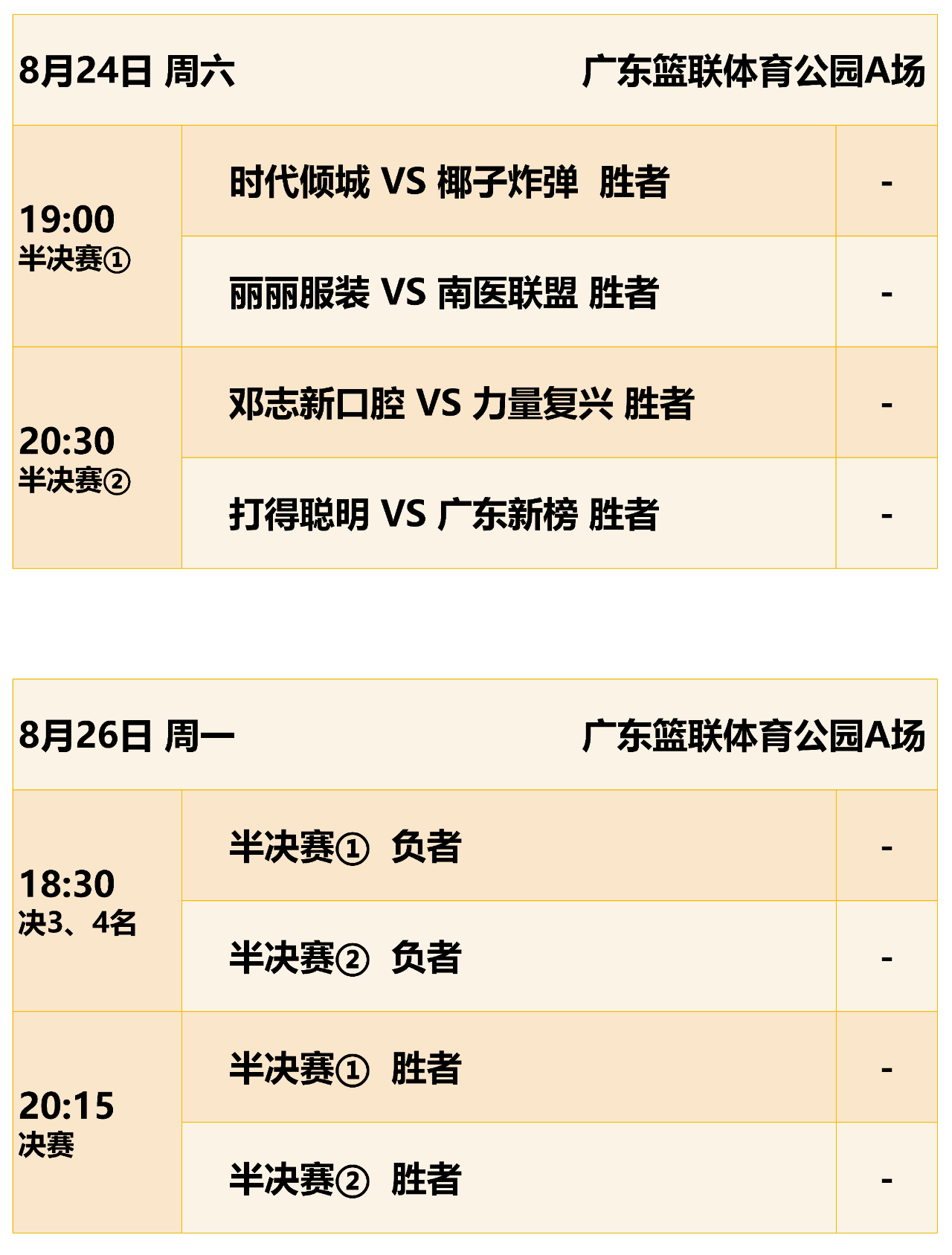 淘汰赛赛程表