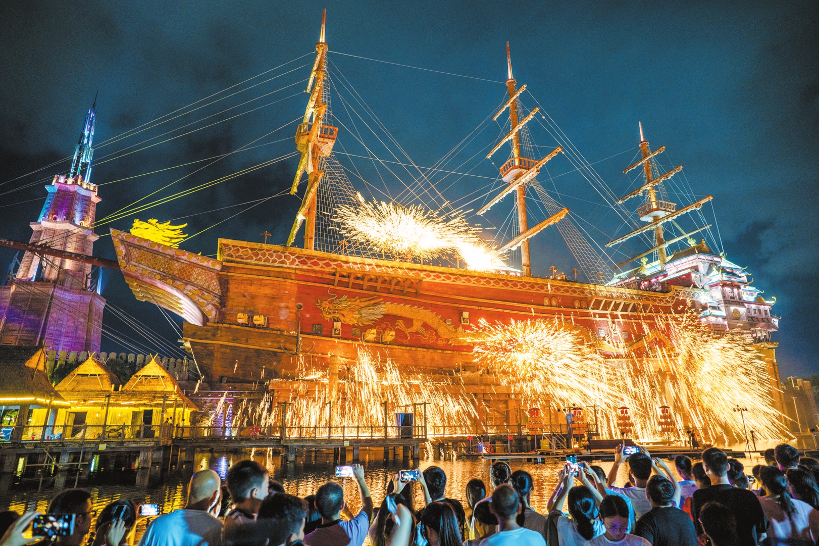 海口长影环球100奇幻乐园精彩的打铁花表演。本报记者 石中华 摄