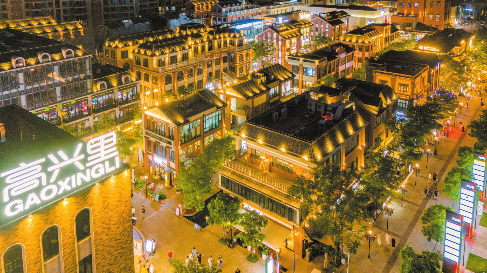灯火辉煌的高兴里特色商业文化街区。本报记者 苏弼坤 摄