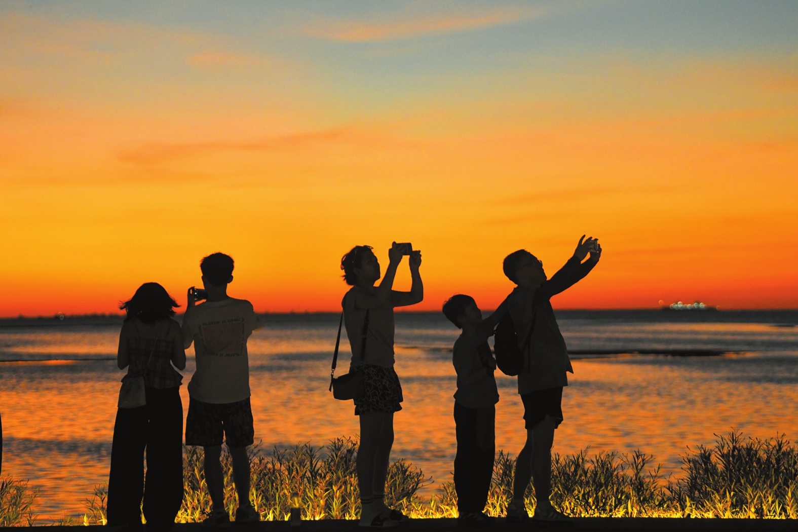 8月28日傍晚时分,夕阳的余晖笼罩着海口湾,绚烂的彩霞变幻多姿,云洞图书馆附近市民游客络绎不绝,纷纷在此露营或休闲漫步,感受当下最美的光阴。