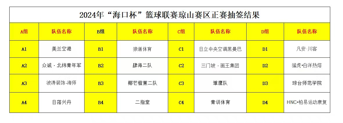 随着分组对战表的正式出炉,2024年“海口杯”篮球联赛(琼山赛区)的正赛也即将拉开帷幕。关注“海口旅游”微信公众号即可了解更多赛事信息,让我们共同期待这场篮球盛宴的到来,为各支参赛队伍加油助威,见证他们在赛场上的精彩表现!