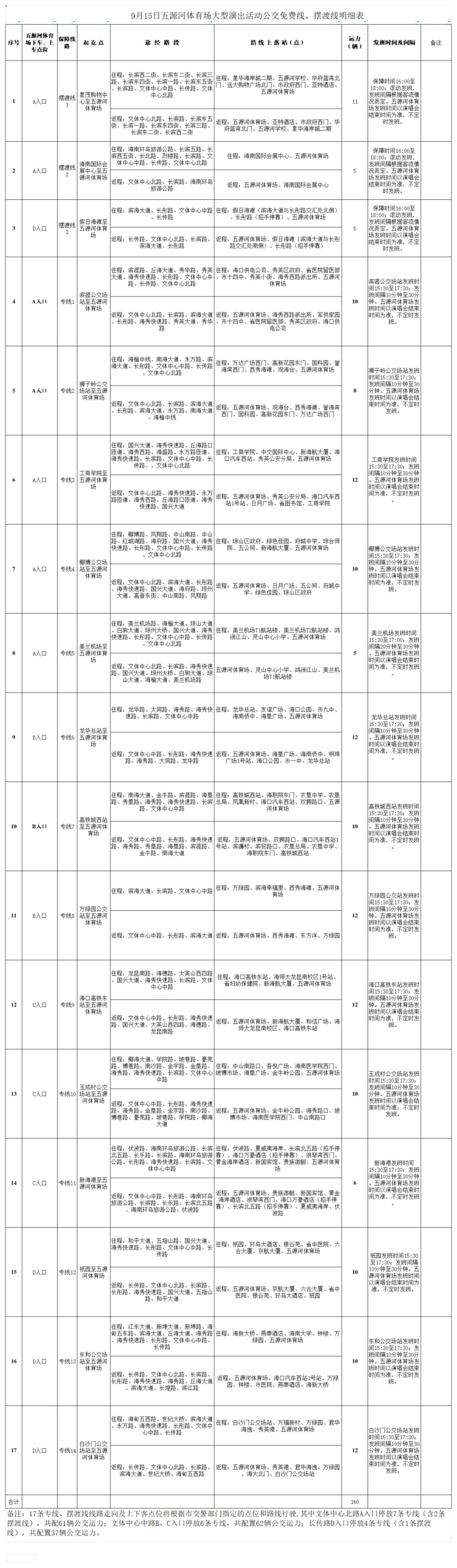 备注:观演群众可在各点位乘坐免费公交车抵达五源河体育场,返程上车点即为往程下车点。