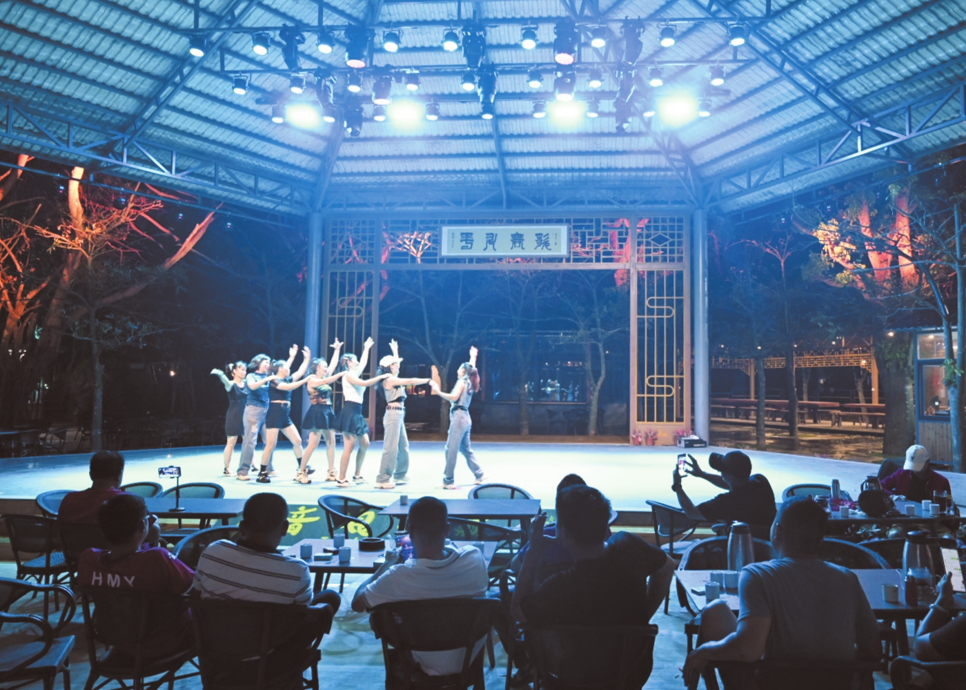 9月17日晚,海口火山口公园重新打造的音乐+旅游新业态正式迎客,舞狮、琼剧等节目接连上演,吸引众多市民游客。当天,火山口公园以及火山口咖啡厅、火山口粤式早茶重新开放营业。