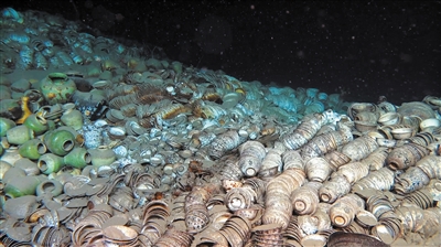 南海西北陆坡一二号沉船遗址出水的瓷器。(新华社发)