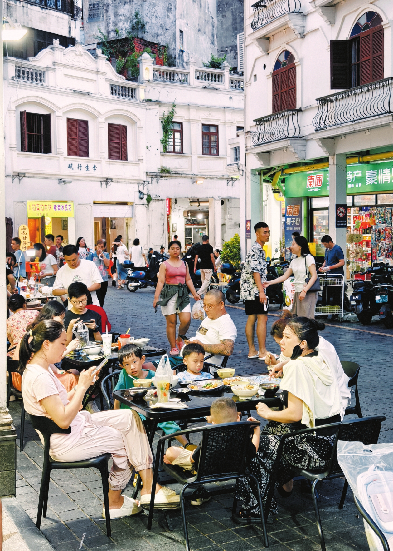 8月31日,海口骑楼老街水巷口沿街美食琳琅满目,引来游人品尝美味。