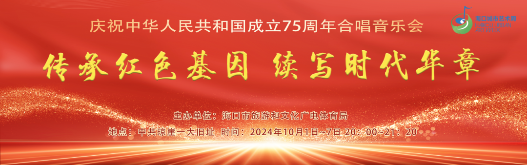 在金秋送爽、举国同庆的美好时节,首届海口城市艺术周的配套文化活动——“庆祝中华人民共和国成立75周年合唱音乐会”,将于10月1日至7日在承载着厚重革命历史的中共琼崖一大旧址,奏响爱国强音,共绘时代华章。