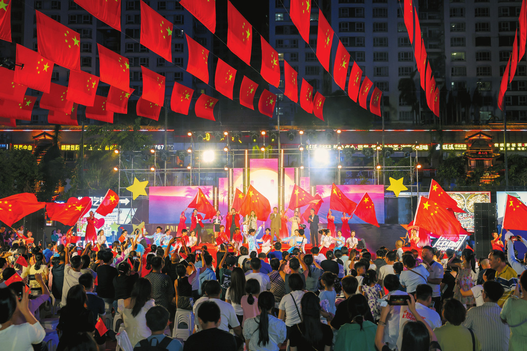 本报10月4日讯(记者吴雨倩)10月4日晚,首届海口城市艺术周的重要配套文化活动——“中国风”红色摇滚演唱会在上邦百汇城举行。本次活动不仅展示了红歌与摇滚音乐的精彩结合,还通过一系列经典歌曲的演绎,让红色文化在欢快的旋律中流淌,激荡着现场每一个人的爱国情怀。