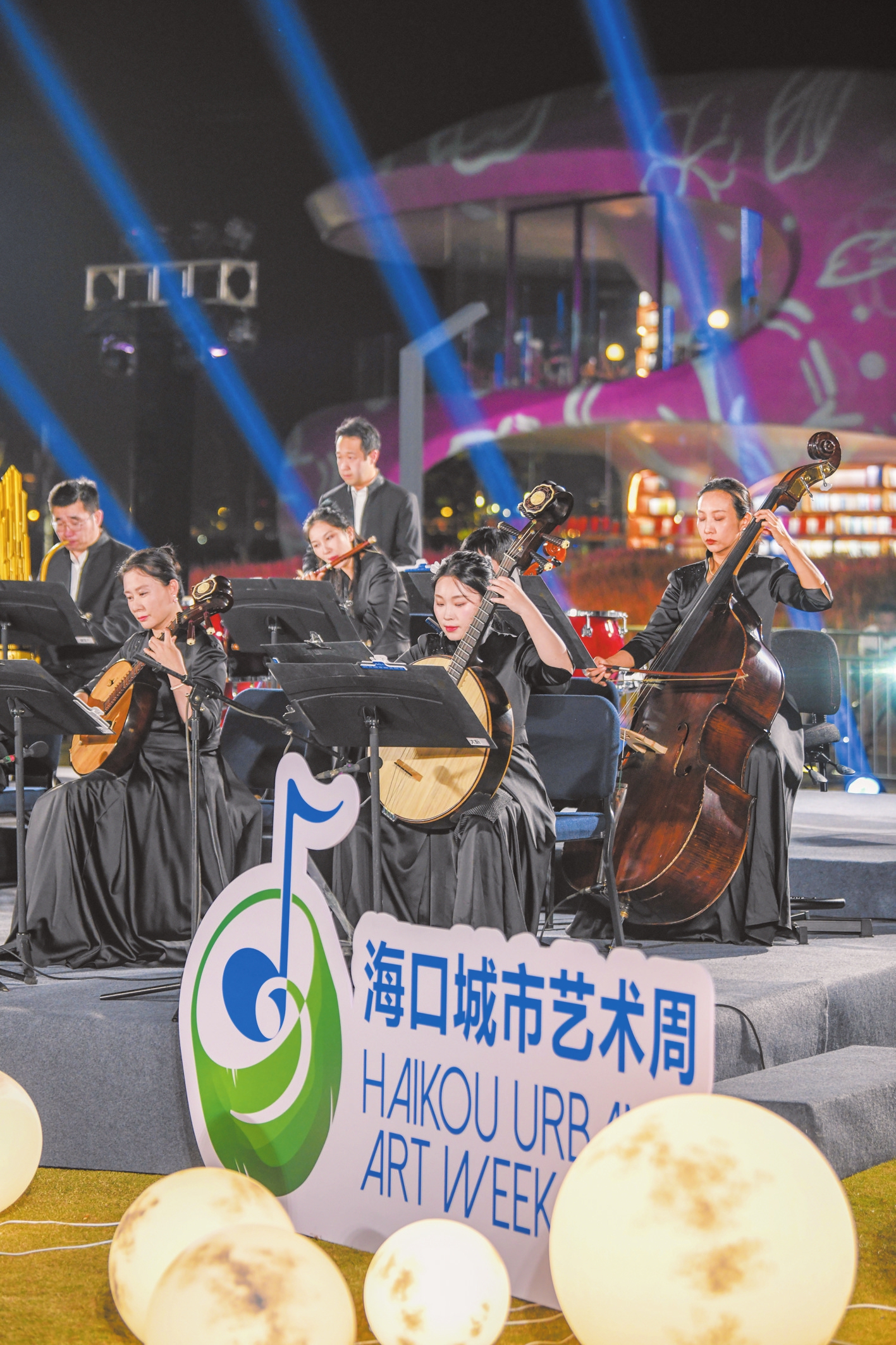 10月9日晚,由中央民族乐团带来的《椰风海韵》音乐会在海口云洞图书馆外奏响。 本报记者 杨鹤 摄