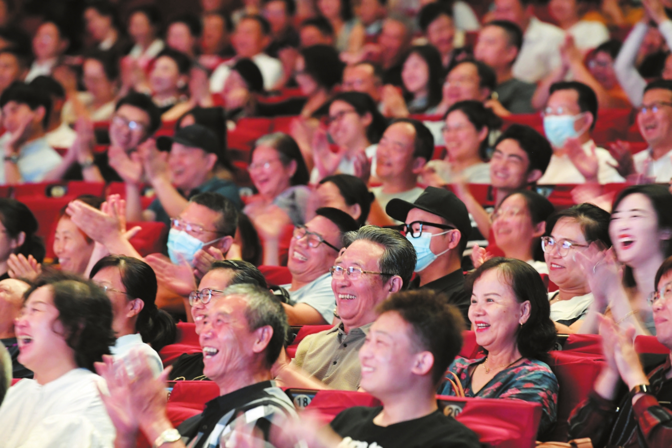 10月10日晚,中央民族乐团携《泱泱国风》音乐会,为首届海口城市艺术周画上圆满句号。图为演出现场指挥带领观众一起加入到演奏中。本报记者 苏弼坤 摄