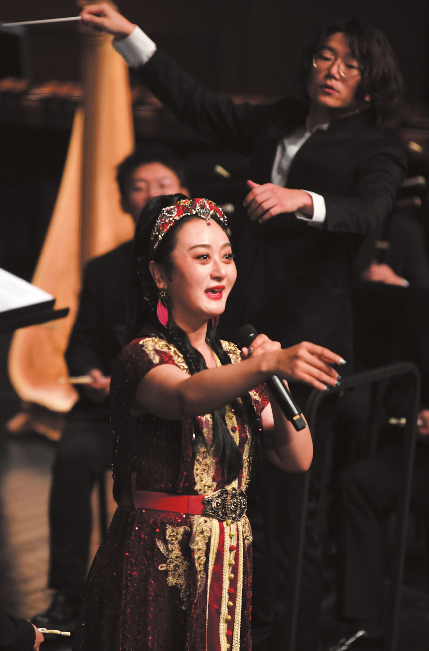 10月10日晚,在指挥家王冠人的引领下,音乐会以欢快的节奏、激昂的旋律,点燃了整个剧场。本报记者 黄一冰 摄