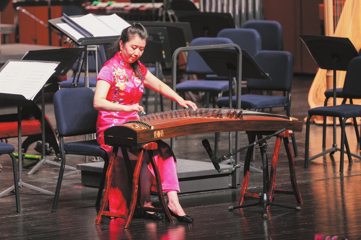 10月10日晚,在《泱泱国风》音乐会现场,古筝独奏《渔舟唱晚》的宁静致远,让人感受到了渔舟归航的安详。本报记者 苏弼坤 摄