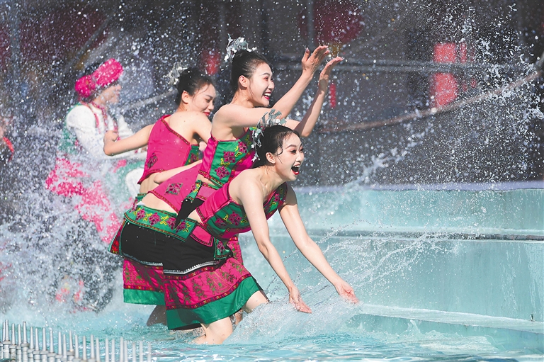 在保亭黎族苗族自治县七仙文化广场,海南七仙温泉嬉水节上黎族苗族风情浓郁的歌舞。王将就 摄