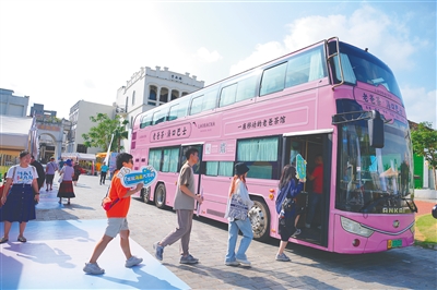 近日,由海南省旅游和文化广电体育厅主办的“发现海南大不同”媒体采风活动举办,媒体代表体验老爸茶海口巴士。