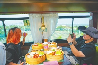 据了解,“巴士”上设有全景天窗、音乐舞台、吧台,年轻化的“老爸茶”茶歇产品。车厢内还有琼剧、音乐表演等,市民游客可以沉浸式体验“移动的老爸茶馆”。
