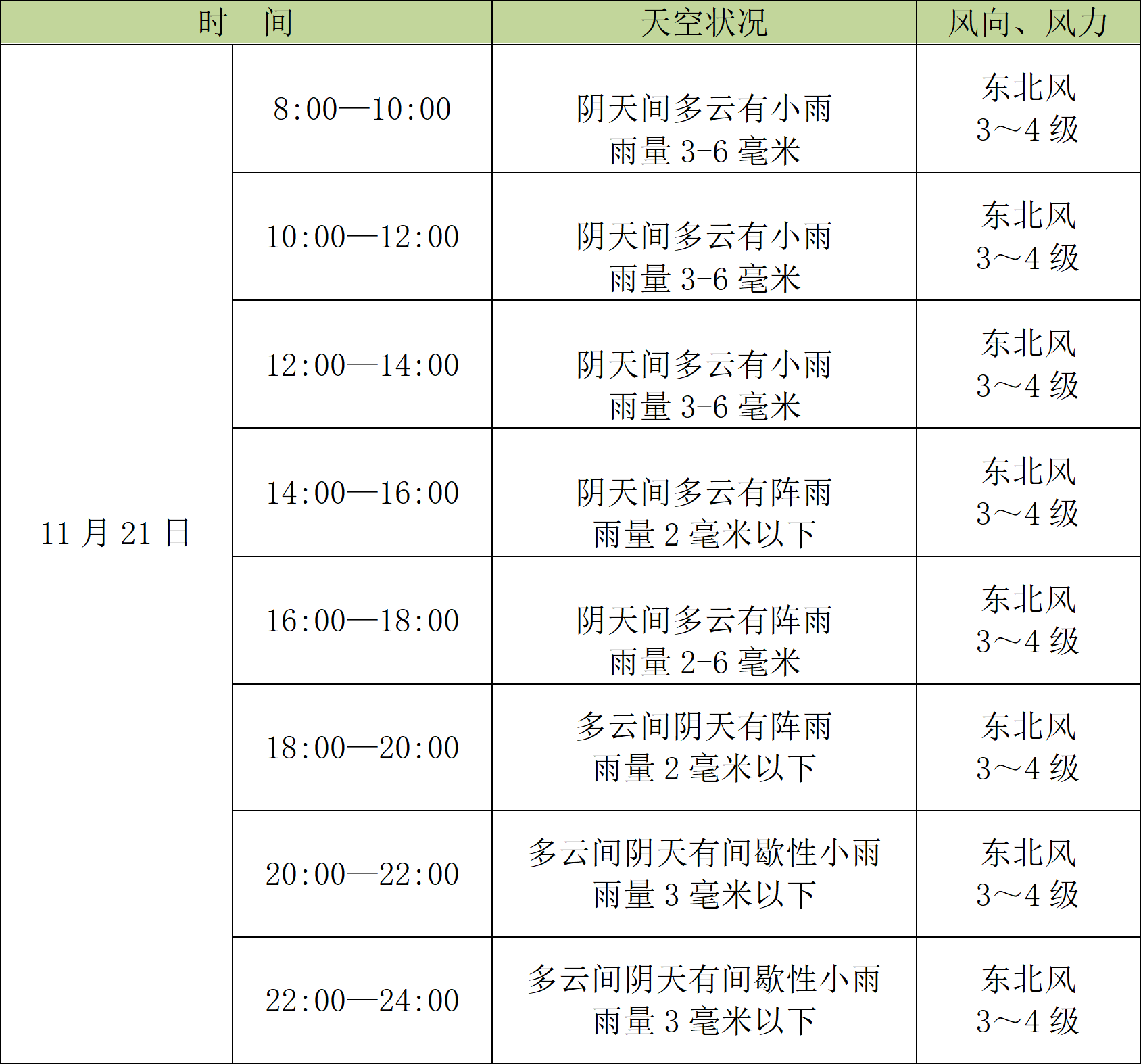 预计11月21日,五源河体育场一带有阵雨天气,主办方会提供雨衣放置在座位上,夜间体感偏凉,户外活动请注意保暖。
