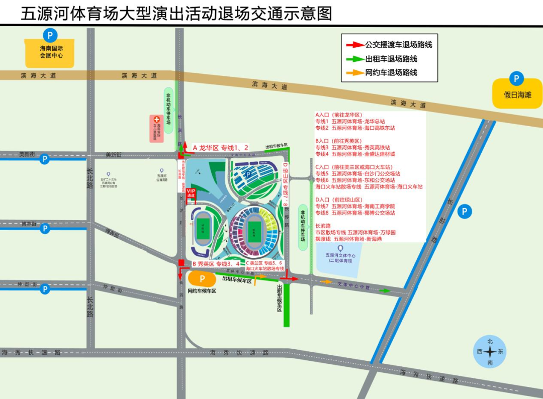 海口公交提醒观演群众,演出活动结束后所有免费公交专线车将原路返回,下车点即为上车点,请留意以防误乘。因场馆周边网约车、出租车数量有限,难以保障快速疏散,建议观演群众优先选择乘坐公交车到达市区,再换乘出租车或网约车至目的地。观演群众如有乘坐西海岸区域微公交出行需求,可现场扫补票码乘车,如有咨询和物品遗落,可拨打12345服务热线或公交客服热线66663066。
