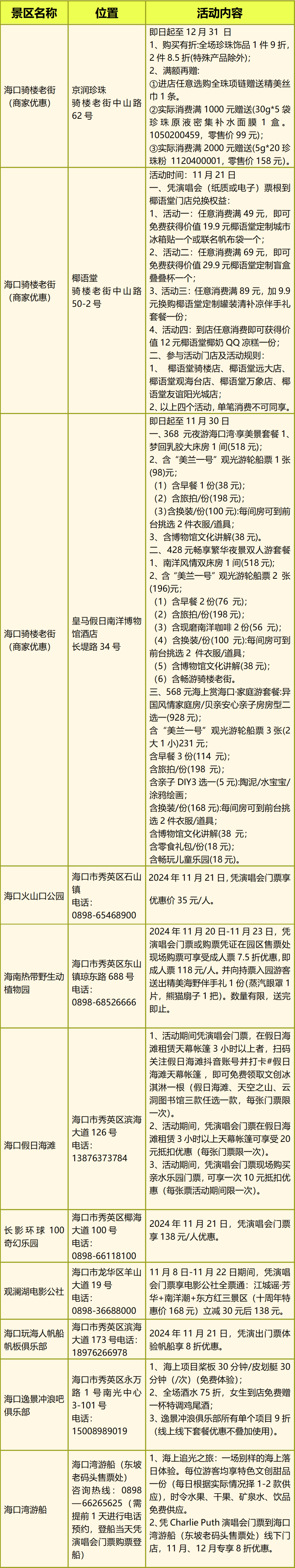凭门票即可享受海口旅游超多福利!