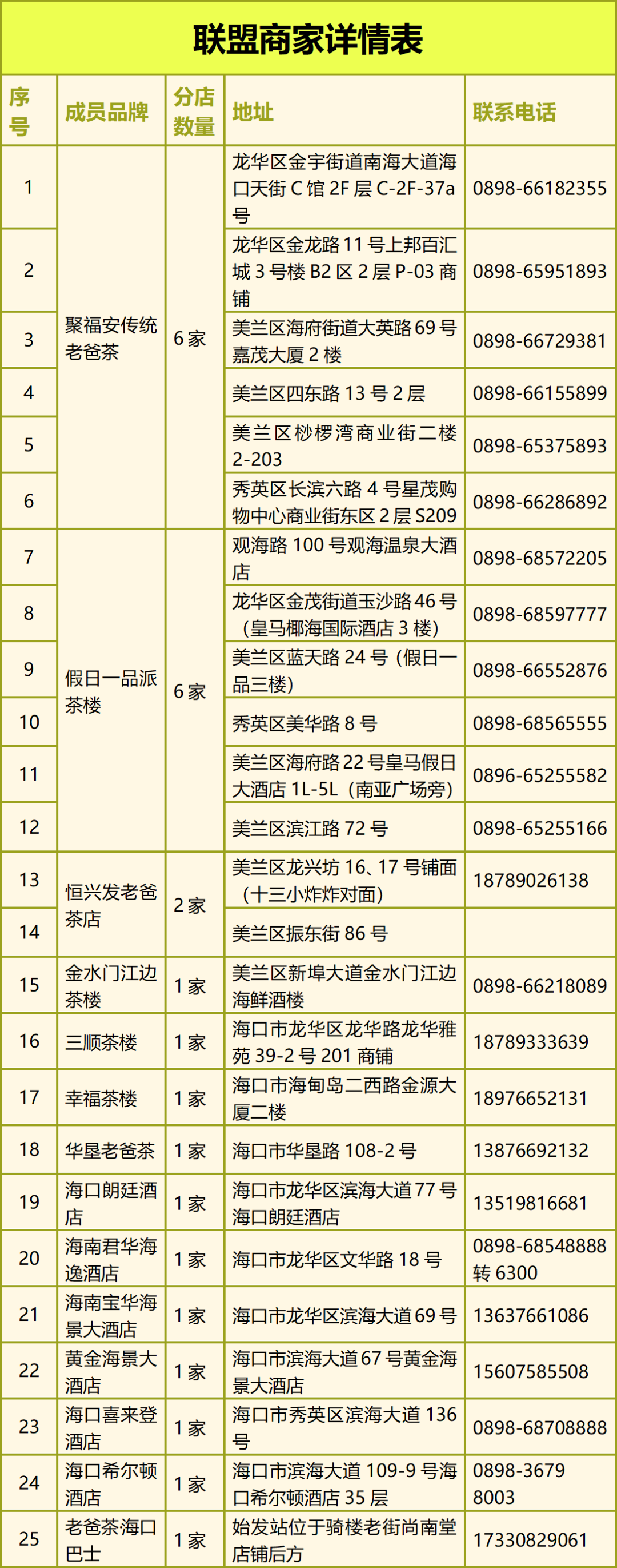 以下是老爸茶联盟各商家信息