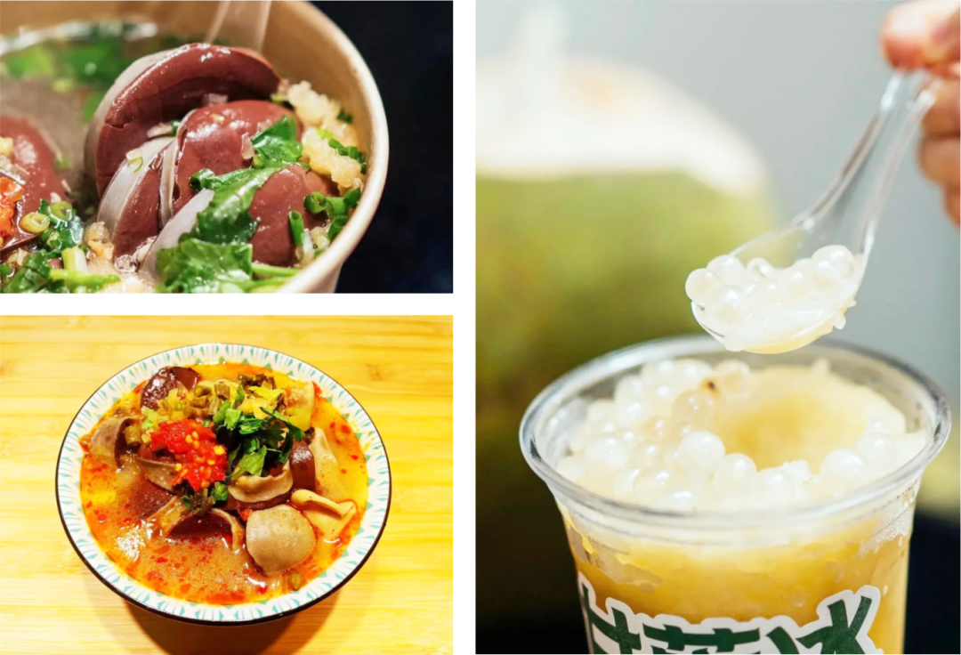 专门开发海南热带原生态特色饮品和海南本土传统特色各式粗粮点心。鲜榨椰奶加上五谷杂粮,就是一碗地道醇厚的清补凉,呈现海南味蕾记忆。还有“鸡屎藤”、“椰子冻”、“芒果肠粉”,用一种淳朴、自然、悠闲的生活方式直逼心灵。