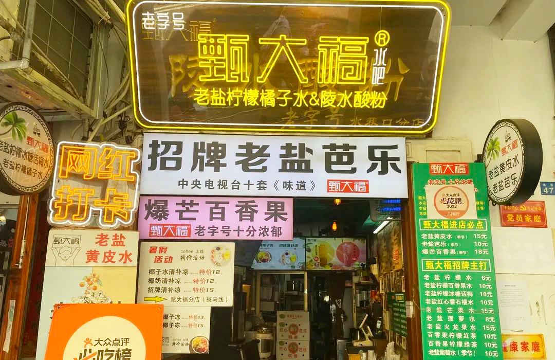 甄大福作为“吃遍海南”入选单位,是骑楼老街必打卡网红店铺。清补凉、椰子冻、菠萝冰等海南地方特色甜品,海南炸炸、陵水酸粉等海南地方特色小吃,以及老盐芭乐、老盐柠檬等老盐系列水果饮品,深受大众的喜爱。