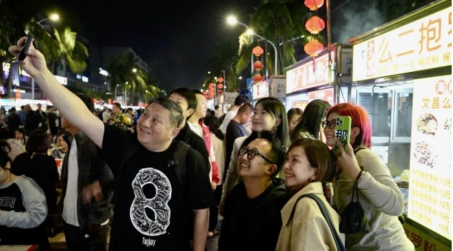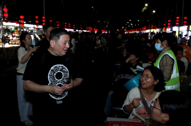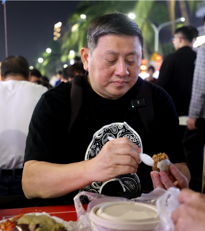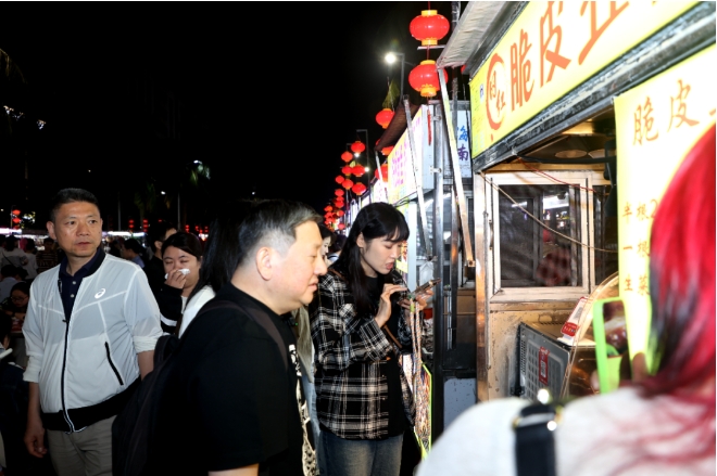和海南一样,新加坡同样有着热气腾腾的夜市文化,从华人节日市集到现代音乐、时装展览,夜市主题和活动丰富多样。陈海泉大使旧时在新加坡便常去夜市,来到烟火气满满的海大南门夜市,大使不禁夸下“海口”:“今晚吃得太棒了,这个夜市是我来中国之后最好的体验之一,希望还能再回来这个夜市。”