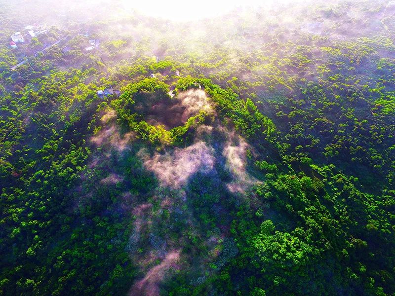 雷琼火山群是新生代火山的聚集地,这里已发现约177座火山,火山活动从中白垩纪一直持续至全新世。最近的一次喷发,发生在海南岛的石山地区,距今约1万3千年前,形成了如今的海口石山火山群。这些休眠火山,形态各异,构造完整,构成了一幅幅动人心魄的自然画卷。