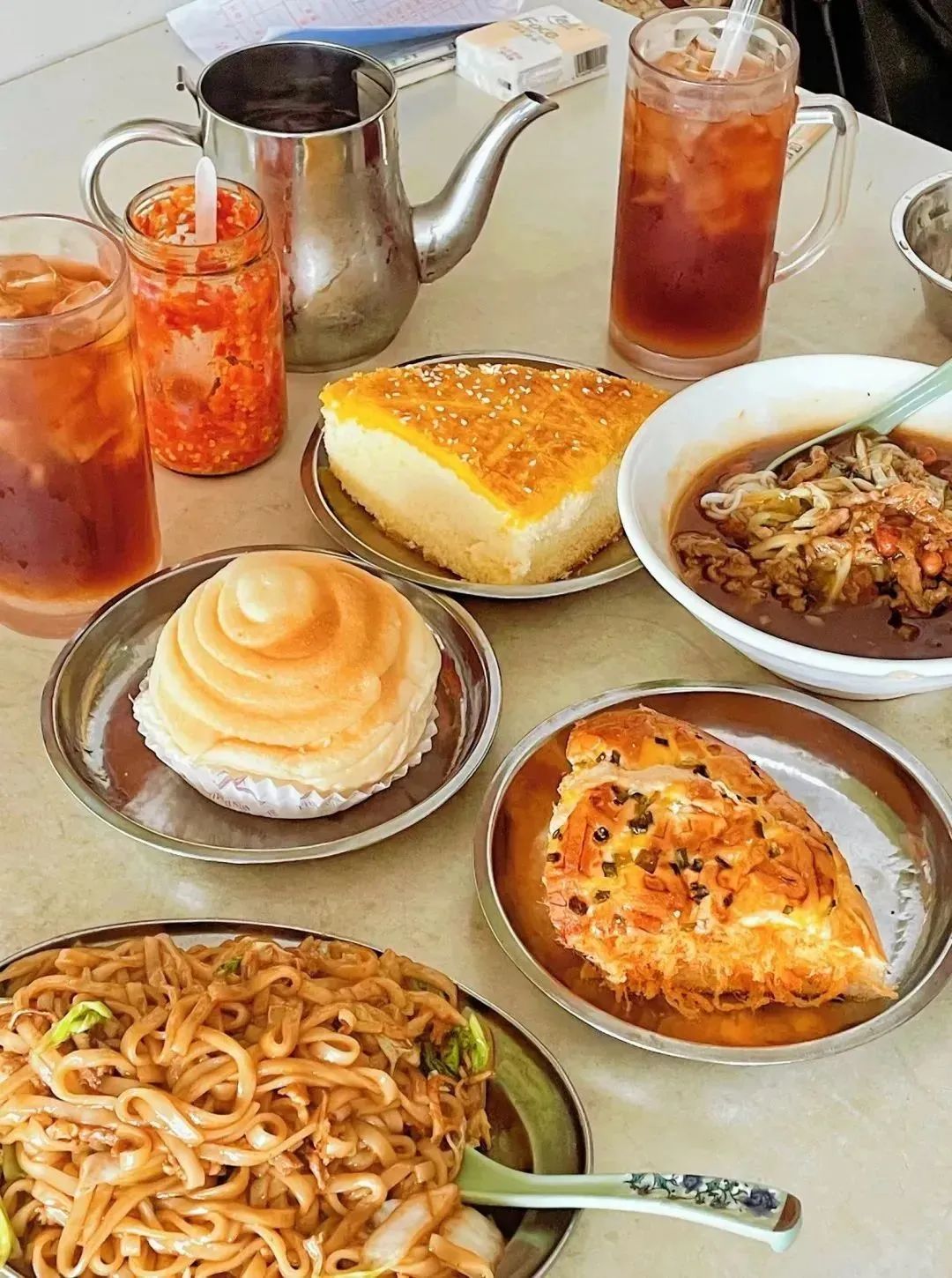 喝茶的核心要义是“慢”。从旭日东升到夕阳西落,宽敞明亮的茶馆人声鼎沸,如果你是第一次来到这里,那也不必约束,你甚至可以慢悠悠地消磨一整天。在这里,除了绿茶、普洱、铁观音等常见的茶类,还有海南黑咖啡、奶茶等本土茶水,更是有菠萝包、叉烧包、油条、南瓜球等种类丰富的小吃......茶馆外的生活,奔波忙碌;而茶馆内的生活,则被按下了暂停键。