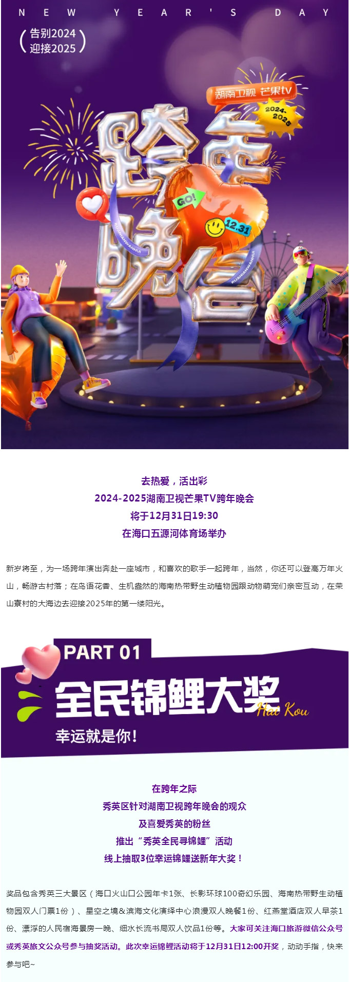 湖南卫视跨年晚会 | 秀英全民寻锦鲤 新年大奖等你来拿