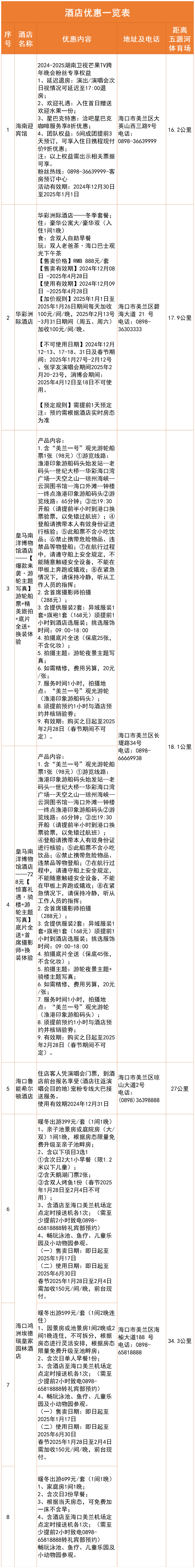 1. 即日起至2025年1月27日期间,凭湖南卫视跨年演唱会门票即可享受住房和餐厅单点8折优惠(酒水海鲜除外),即双标320元含双早,大床350元含双早。