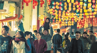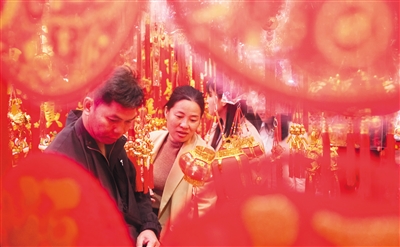 市民在海口博爱路老街挑选年货。