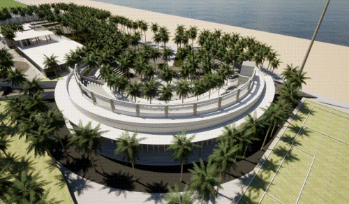 印象剧场在保留总体的基础上,将进行局部拆除重建,充满雕塑感、遗迹感的建筑骨架融合海滩景观,营造一种沧桑又富有生机的氛围。