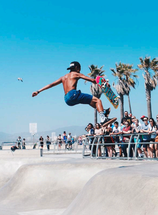 海滩是滑板运动的诞生地,由南加州的冲浪者为能在陆地上模拟冲浪发明。印象剧场旁将开辟建设滑板公园,集合设计美学与专业滑行体验,助力成为国际赛事发生场。