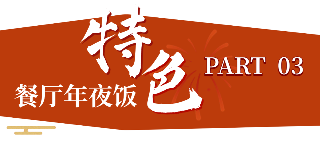 携珍馐入宴,耀启新年。中式除夕团圆宴2666元/席起,欢享财神爷福袋派送及红包抽奖。新春主题自助晚餐398元/位,现场体验包饺子、写福字等多项趣味游戏。