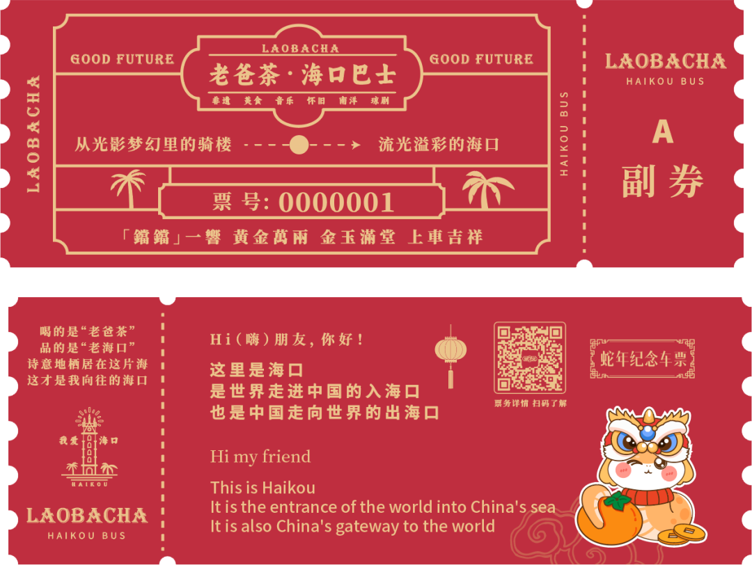 关注“老爸茶海口巴士”微信公众号→>铛铛车票→立即订票→>选择对应班次、日期、人数进行支付→支付成功后凭核销码乘车,登车后可兑换实体纪念票。