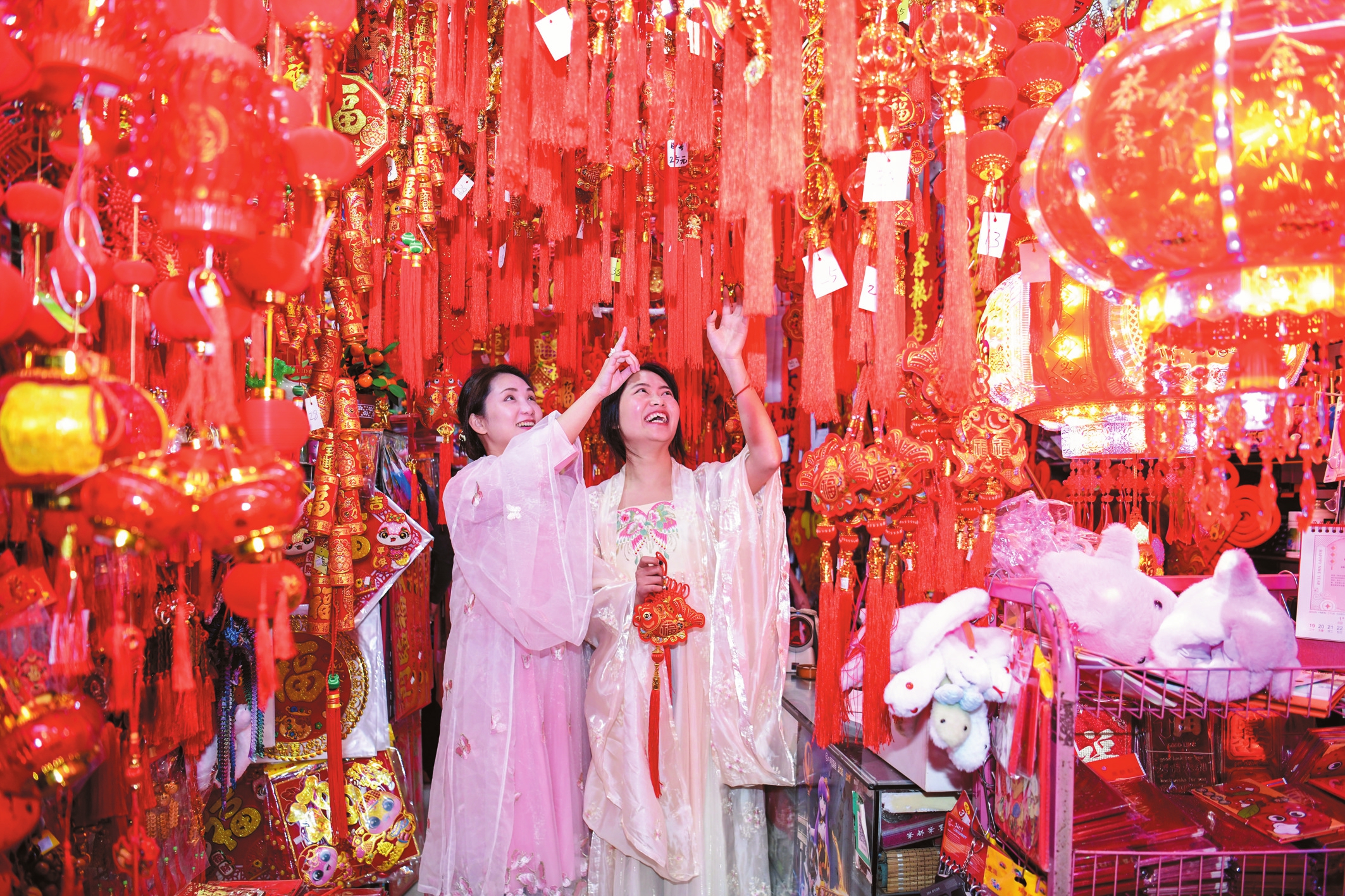 1月19日,在文庄路上的节庆饰品商店内,市民正在选购中国结等饰品。