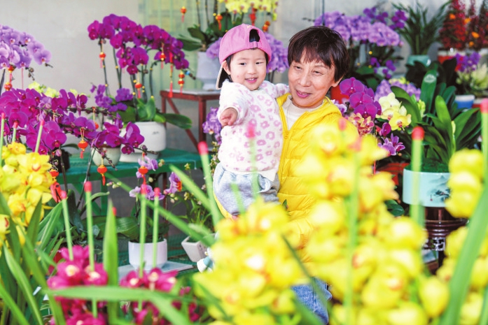 海南花卉大世界内,市民一边赏花,一边挑选,欢乐地迎接新春到来。