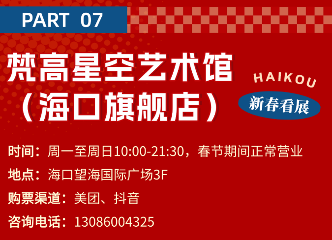 走进艺术馆,立刻被光影、VR、AR等各种主题元素包围。仿佛置身于一个4D互动的艺术世界,每个角落都散发着独特的魅力。这里将分为多个主题空间,并打造出多个沉浸式交互体验场景。带领大家画游梵高,感受梵高画中生命的张力,真切的体会到梵高的内心世界!