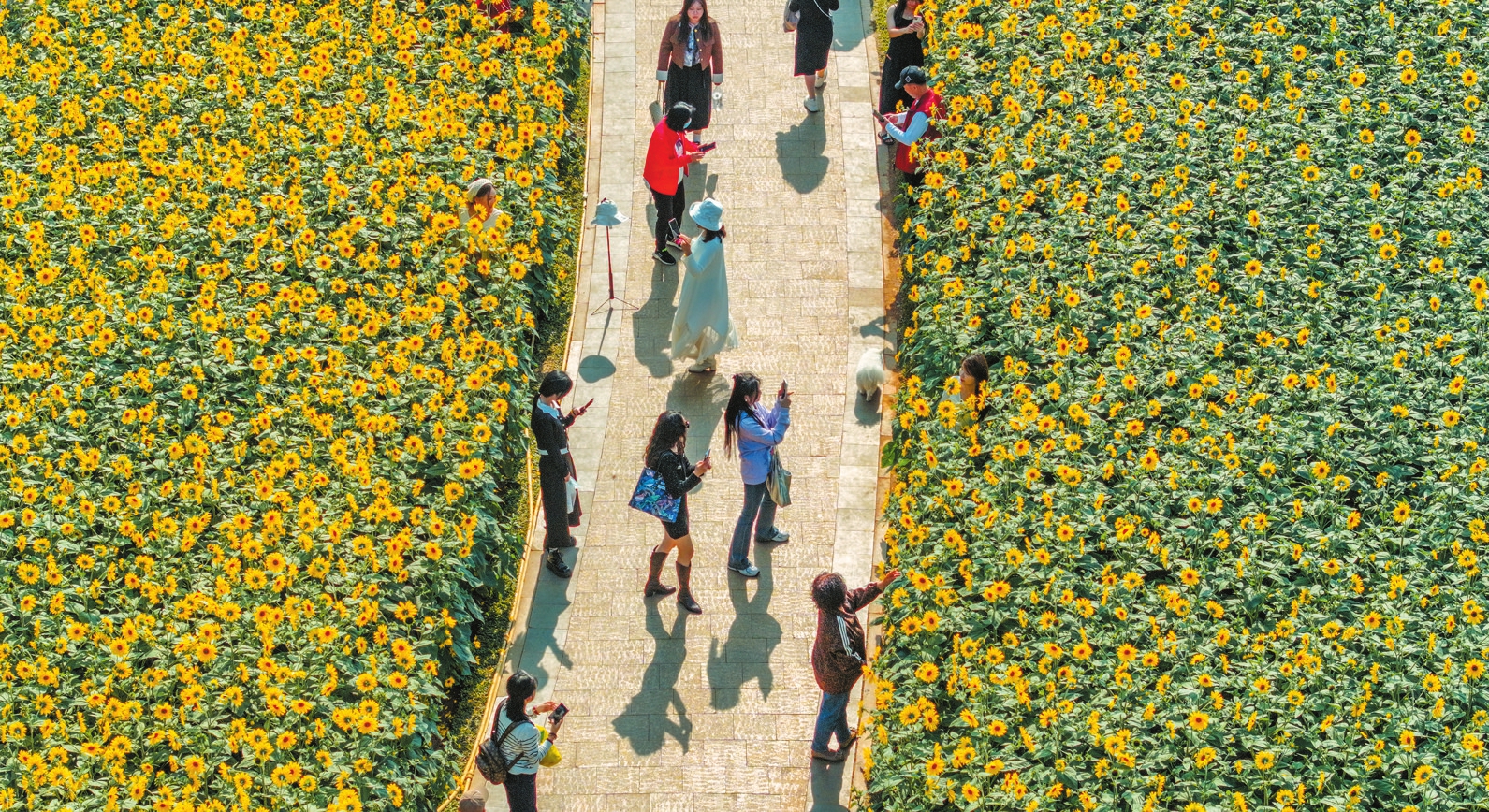 连日来,万绿园内的向日葵竞相绽放,美丽的花海吸引市民游客观赏拍照。本报记者 康登淋 摄