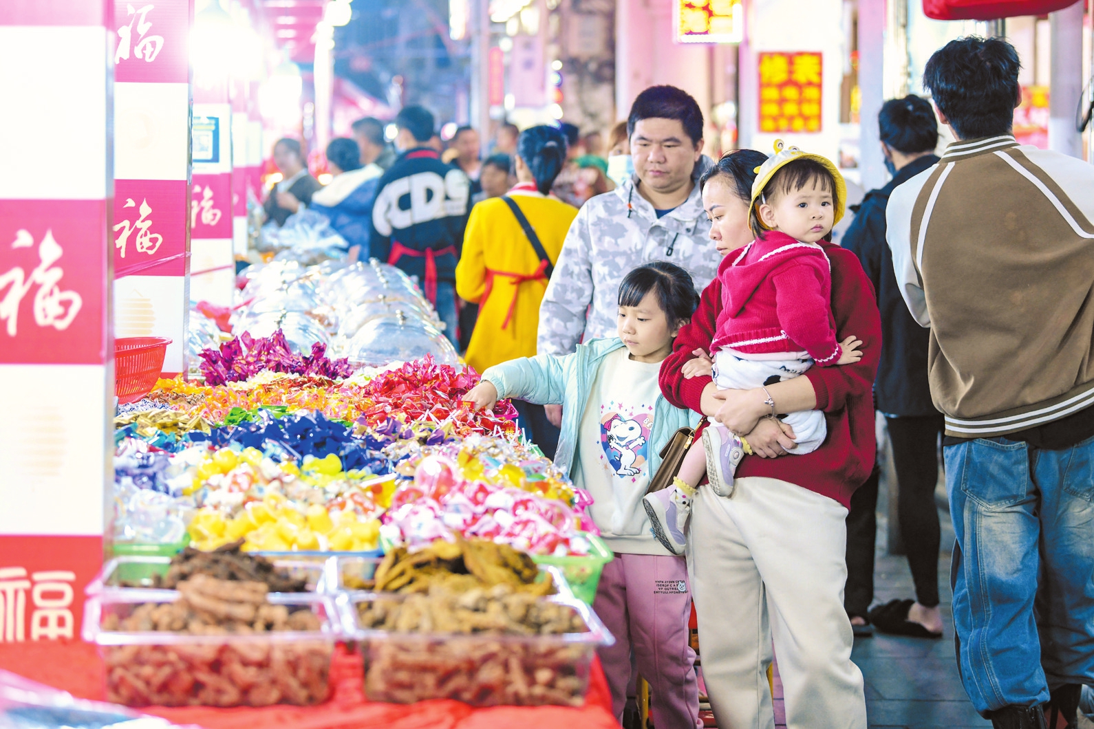 在海口,年味是高高挂起的大红灯笼、琳琅满目的年货。