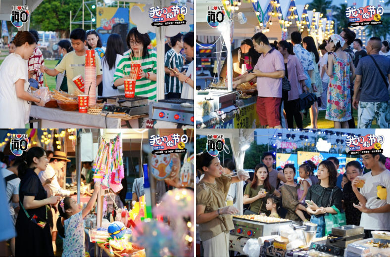 活动现场除了好看的民俗表演,还有好吃好逛好玩的非遗市集。整齐干净的摊位,有非遗传统作品、文创作品、特色美食等,让您在欣赏表演、体验文化的同时,尽享热气腾腾的海南特色小吃,鲜香四溢的传统佳肴。