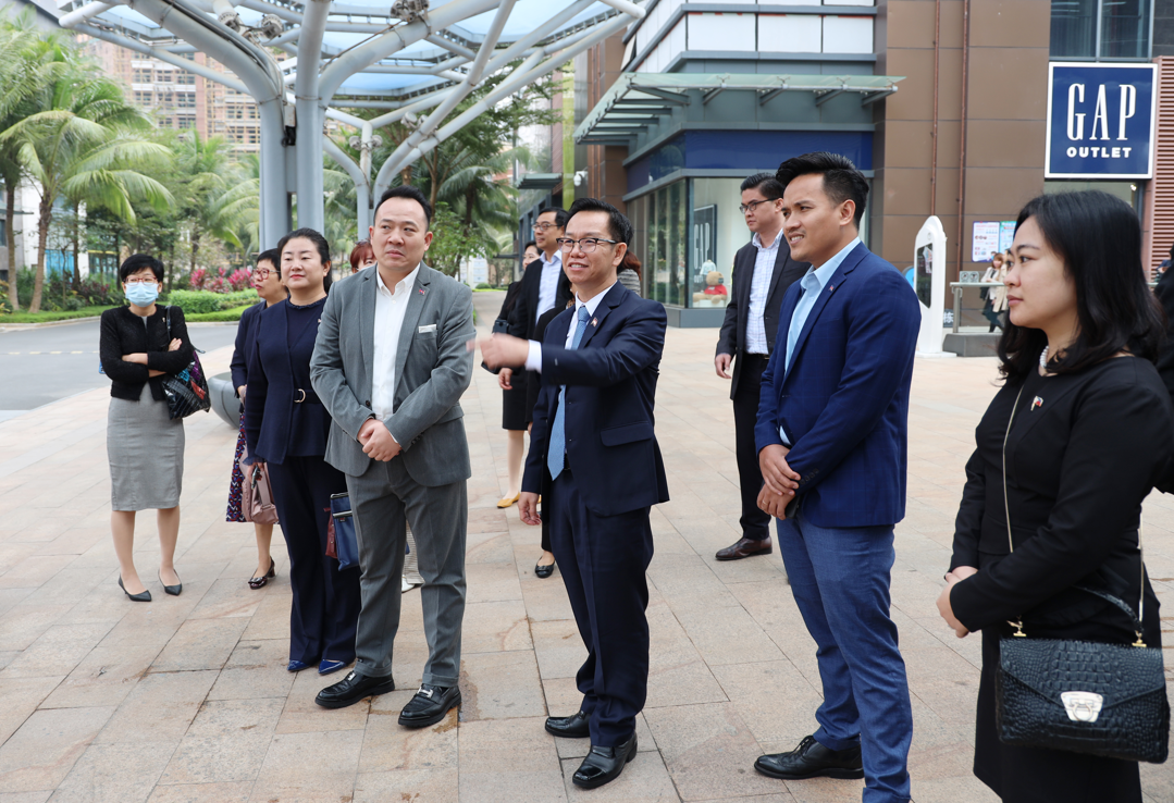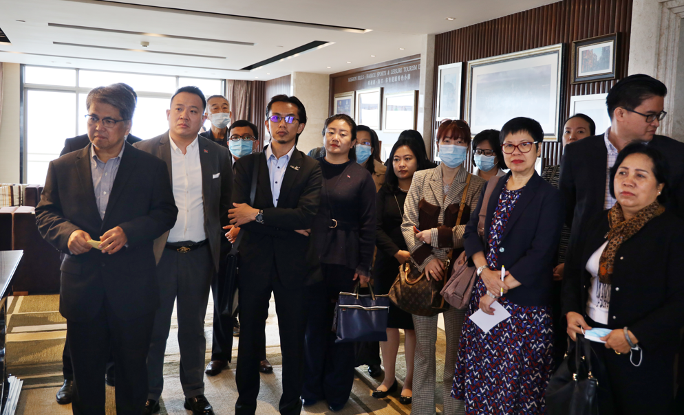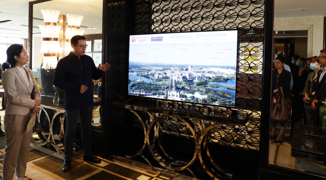 在观澜湖酒店11楼天际线展示厅参观时,观澜湖公共事务副总经理许良程向来宾们介绍了园区的发展情况及产业布局,并在观澜湖新城介绍亮点项目,让来宾感受到观澜湖多元化的业态组合和新时尚中心。